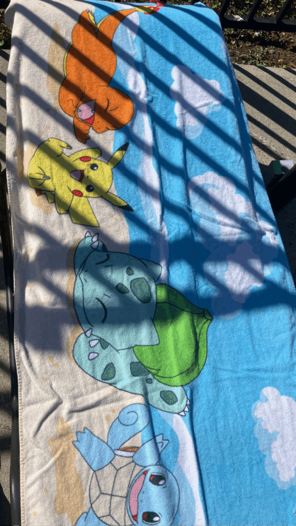 My go-to is this Pokémon towel my boyfriend bought me last year. It’s my favorite! I found a similar one [here] if you want to be cool. 😉